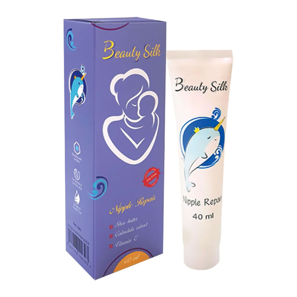 شماره مجوز بهداشت: 5298/ظ/56 Beauty Silk Nipple Repair ساخت کشور: ایران کرم ترمیم کننده جراحات، قرمزی و سوزش سینه ناشی از شیر دهی پیشگیری از ترک خوردن و زخم شدن پوست سینه بدون الکل، بدون پارابن، بدون رنگ، بدون ایجاد حساسیت فرموله شده برای پوست حساس کودک و نوزاد